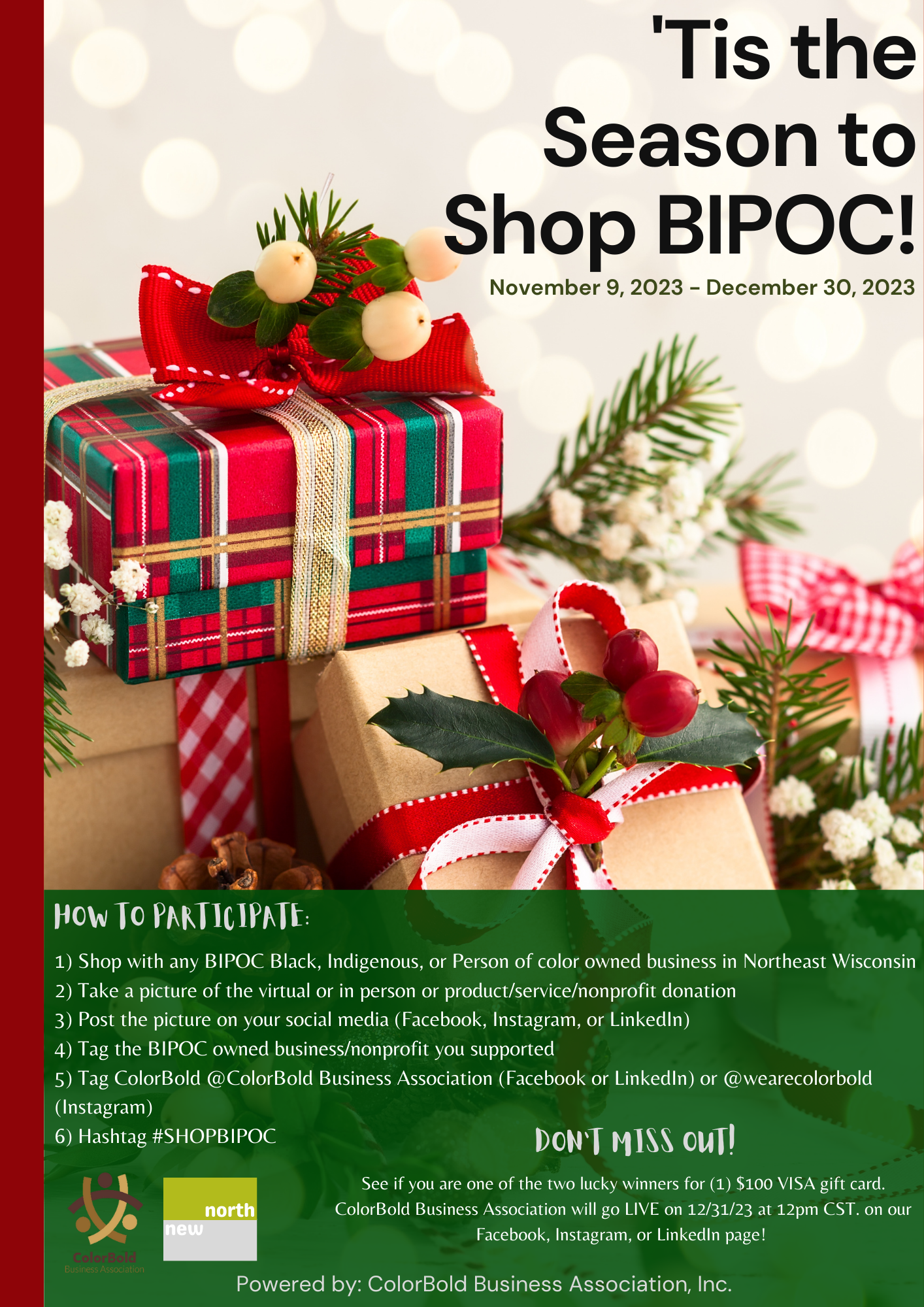 1) Shop with any BIPOC business in Northeast Wisconsin between 11/9/23 - 12/30/23